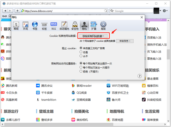 4、点击“移除所有网站数据…”按钮。