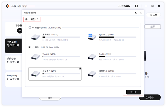 磁盘/分区克隆会将所选硬盘上的所有数据转移到另一个硬盘上。当您想用新硬盘更换硬盘时,它特别有用。要成功克隆,请确保目标磁盘/分区的容量大于源磁盘/分区的已用空间。