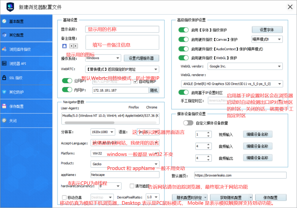 3、用户可以为每个账号设置差异化的登录环境,防止因浏览器指纹相同而造成同平台网络账号关联封号的问题。