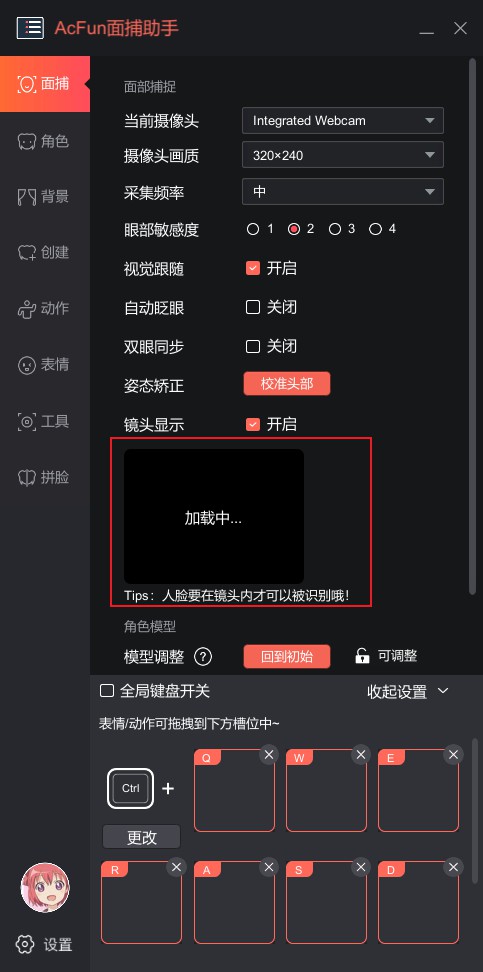 acfun面捕助手是个多功能的虚拟主播面捕工具,可以随时捕捉直播时的面部表情,让虚拟直播更加形象生动,一键导入图片生存自己的虚拟偶像,还能让你的动画动起来,不仅有御姐还有萝莉,许多搞怪的人物形象等你体验,例如说波兔、章鱼娘、大小 姐、妹抖酱都可以切换,免费使用软件添加本地的模型文件就可以制作模型了。