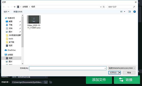4、点击添加文件按钮弹出视频文件管理弹框,点击选择视频文件即可将视频添加到软件上