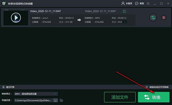 9、完成以上操作后可以点击转换按钮进行视频格式转换