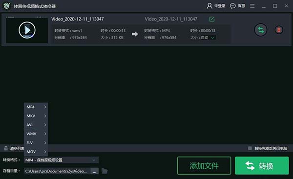 第三步:选择我们转换的格式,选择完点击“转换”按钮,等待转换成功即可。
