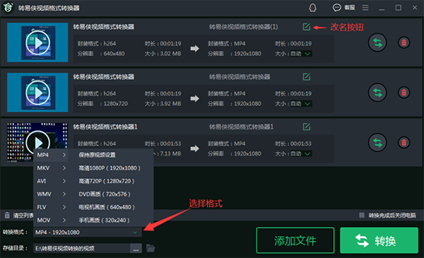 转易侠视频格式转换器是一款免费多功能的格式转换工具软件,主流的视频格式都可以进行直接的转换,还能让你的视频变得更加的清晰,用户可以调整分辨率、码率,同时享受视频压缩功能,设置视频文件的转换参数,还能支持批量转换,导入到视频列表等选项。