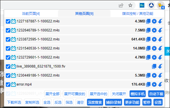 5、同一页面存在多个资源时,支持批量复制链接、播放或下载,提升效率。