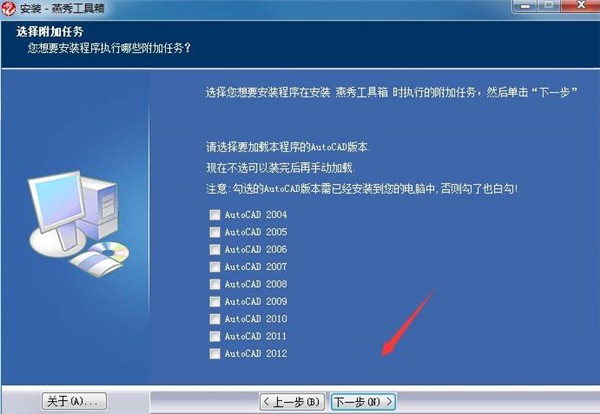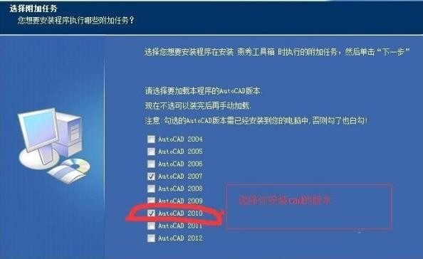 注意:安装燕秀工具的时候一定要选择版本自己所安装的cad版本,版本选择的不对不能正常载入哦。