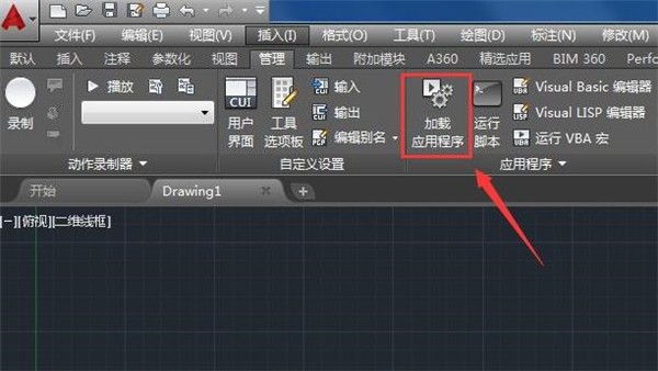 安装好燕秀工具之后,我们打开CAD在管理里面找到加载应用程序选项,如图所示: