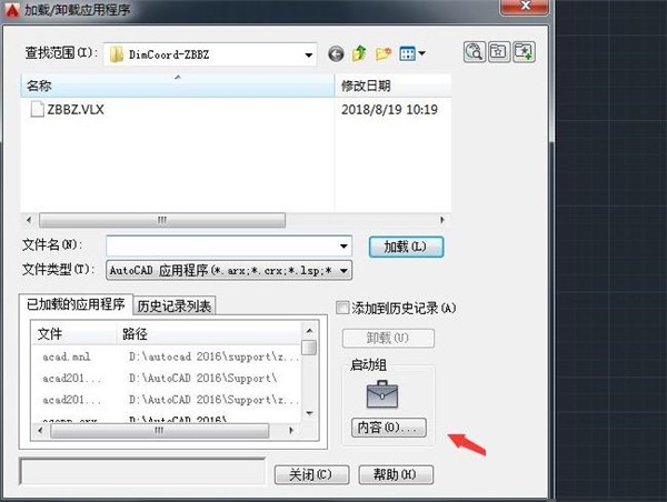 点击加载应用程序选项,在弹出的对话框内选择启动组内容选项,如图所示: