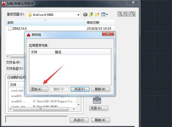 点击启动组内容选项之后,在弹出的对话框内找到添加选项,如图所示: