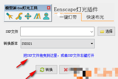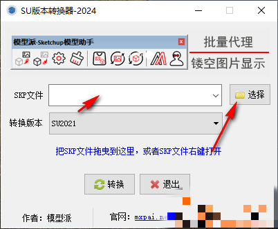 3、支持拖动添加功能,可以将需要转换的skp文件拖动到软件,点击转换按钮就可以将该文件转换为你所选的版本