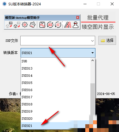 4、su版本转换器界面简单,提供十多个版本转换,让用户在使用SketchUp软件的时候可以转换不同版本的文件