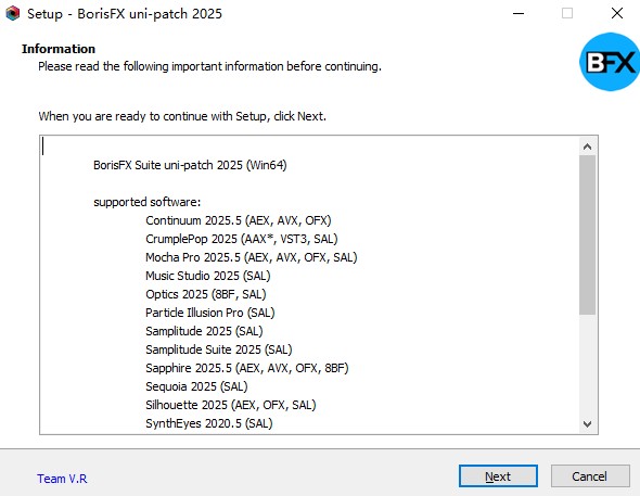 8、运行BorisFX-uni-patch文件夹里面的,BorisFX uni-patch 2025.exe