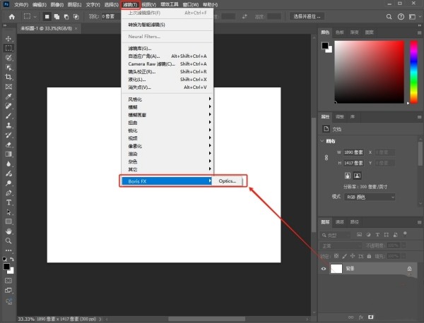 11、打开PS软件,在顶部栏,依次点击滤镜-Boris FX-Optics