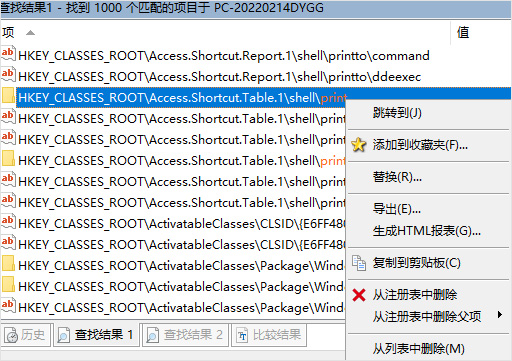 5秒左右,注册表中所有包含Print的项已尽收眼底。更赞的是Registry Workshop对搜索结果的批量处理,只要在搜索结果上Ctrl+A全选,右键可看到批处理菜单,例如“从注册表删除”后,电脑中所有文件右键菜单的“打印”项便消失了,当然可以从历史记录中一键恢复。再如全选搜索结果右键“替换”: