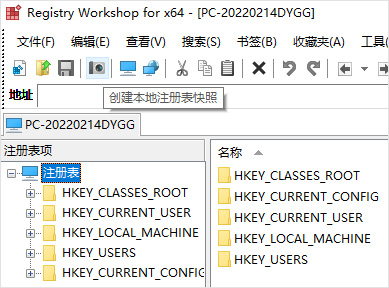 ①点击工具栏“创建本地注册表快照”按钮,新建快照1,安装后再新建快照2: