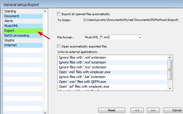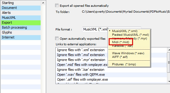 PDFtoMusic可以将PDF乐谱导出为其他格式,从而让用户更加便捷的导入其他软件中使用,是个文件转换的实用工具,下面就来告诉大家怎么导出。