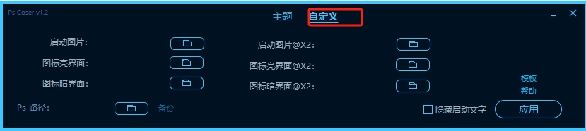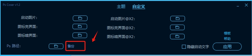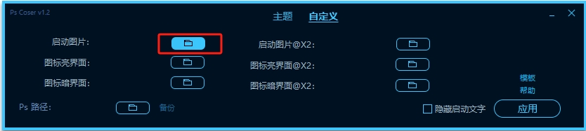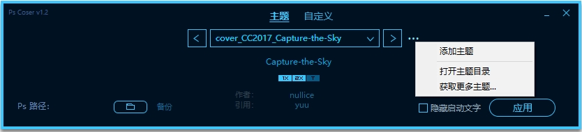 1、选择好主题后,直接点击“应用”按钮,即可在启动Photoshop时查看到对应的主题效果。