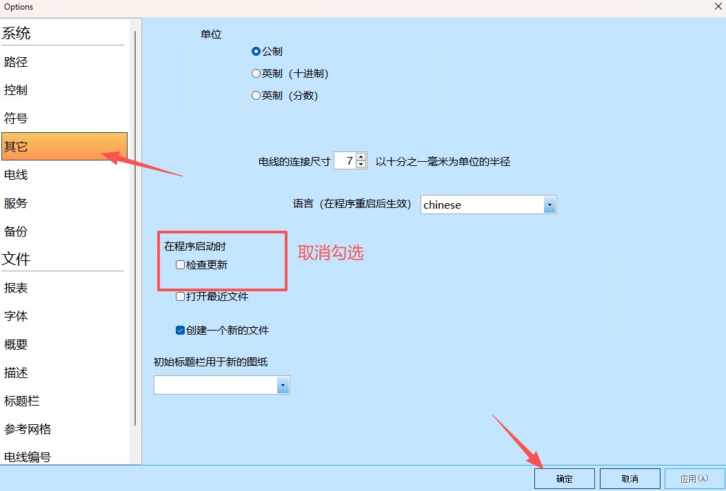8、点击其他——取消勾选检查更新,点击确定,关闭程序;