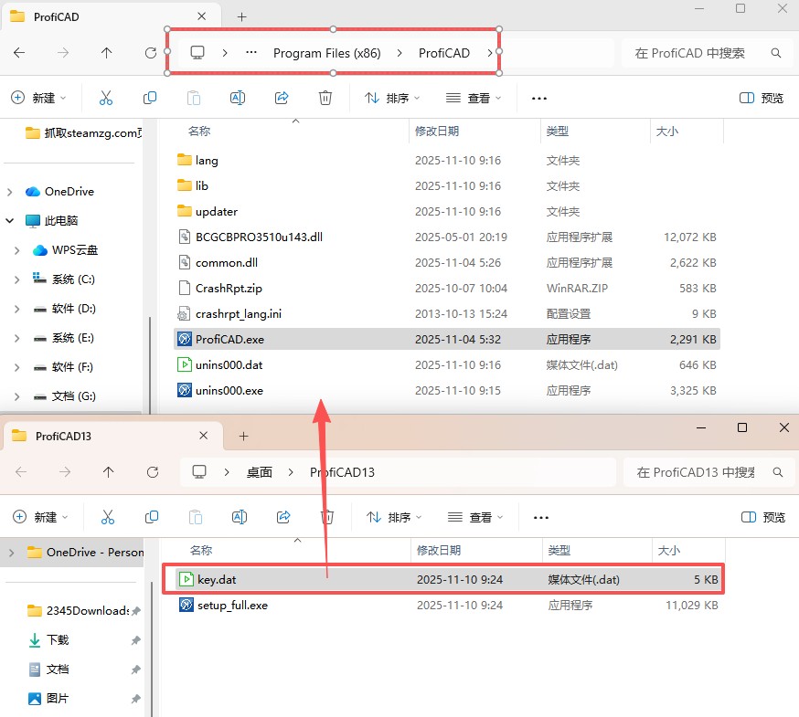 9、将文件【key.dat】复制到安装目录下;