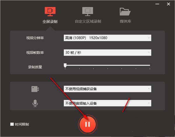 6、点击全屏录制按钮即可进行全屏录制操作,点击暂停即可完成屏幕录制。