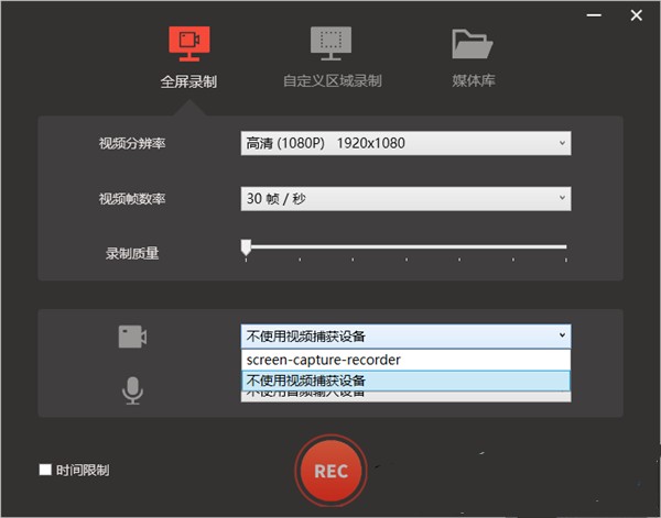 5、点击视频捕获设备按钮弹出录屏设备功能列表,可以点击选择使用视频捕获设备。