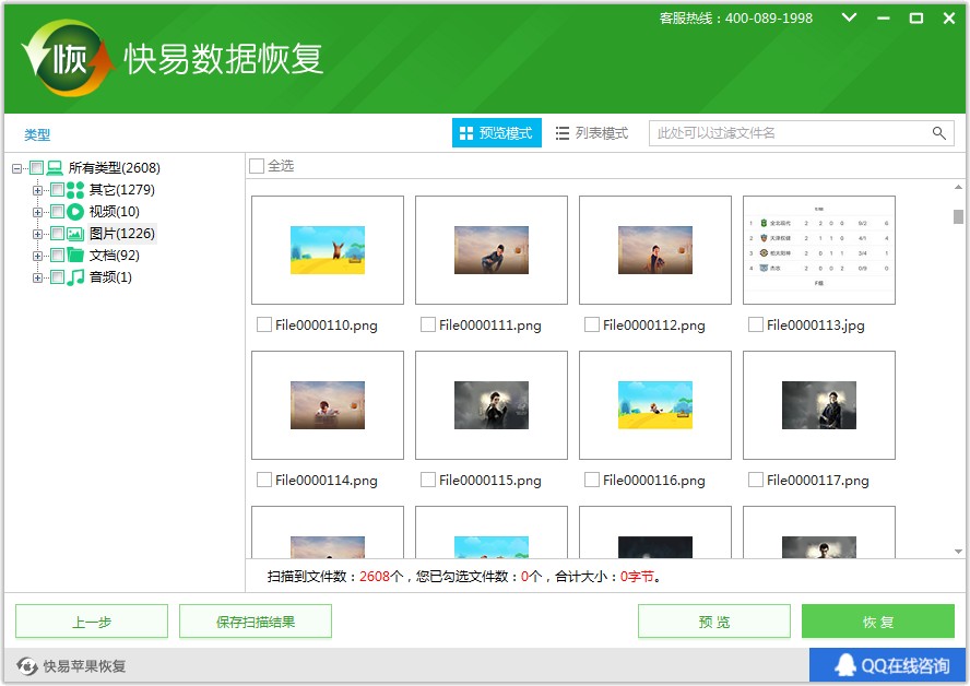 快易数据恢复软件是一款简单实用的数据恢复大师,简洁的界面设计,强大的功能等你体验,用户可以从硬盘、U盘、移动硬盘、SD卡、内存卡、相机卡、手机卡等设备上恢复数据,常见的文件预览效果展示出来,格式化不同的文件,支持xp、win7、win8、win10、32位、64位等不同的操作系统。