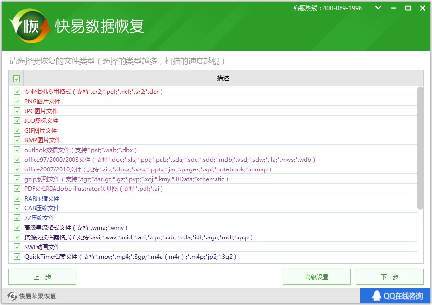 1、包括照片、Word、Excel、PDF、CAD、RAR、PSD等,多达300多种不同的文件类型。