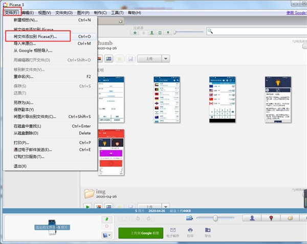 1、运行打开picasa,然后选择【文件】——【将文件添加到 picasa(F)…】
