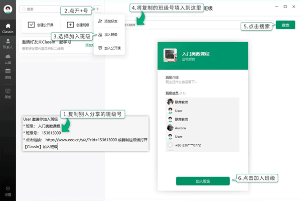 使用方法:首先登陆ClassIn,然后在其他软件(例如:QQ / 电脑微信)中复制老师发送的In口令,之后再次回到已登陆的ClassIn窗口中,会自动弹出报名窗口,点击“加入班级”即可
