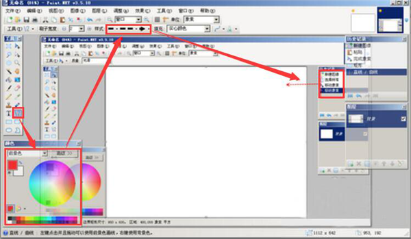 1. 界面直观:采用Windows Aero界面,有立体感和透视感,给人家的感觉。界面简单直观,两侧设有工具、历史记录、颜色和图层四个窗口,用户可在顶部下拉菜单中自行添加或删除。