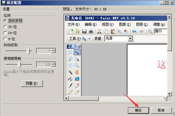 8、最后,NET会弹出“保存配置”的窗口,用户可以根据自己想要的图片质量来进行相关设置,设置完成,点击“确定”按钮即可完成图片的处理和保存操作。