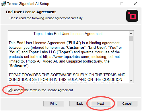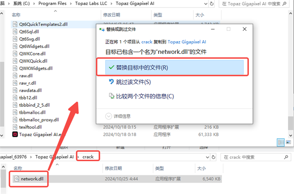 5、安装后在桌面找到Topaz Gigapixel AI程序,右键打开文件所在位置。将crack文件夹中的补丁复制替换到目录当中即可;