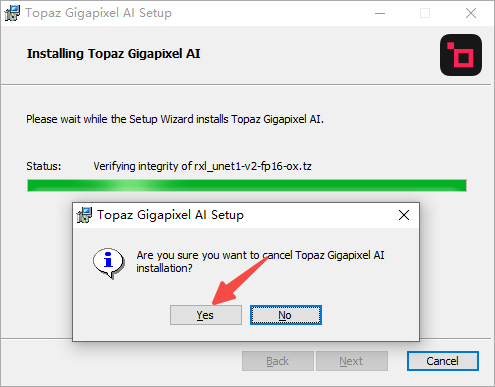 4、如果你卡在下图界面时,无需理会,这时候正在联网下载AI数据(下载好会让你关闭,无需理会),点击Cancel,选择yes即可;