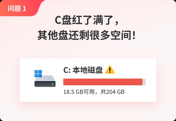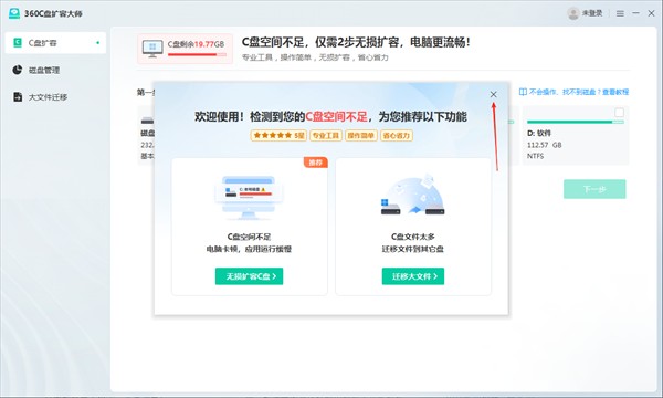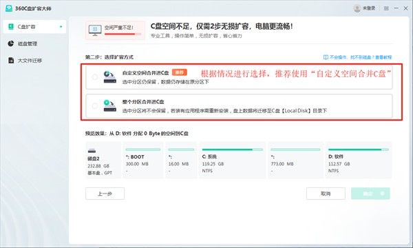 使用C盘扩容功能,仅需两步,将D盘、E盘等其他盘上的空闲空间扩容到C盘