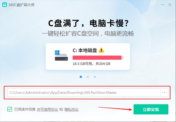 360C盘扩容大师是解决C盘空间紧张、硬盘分区问题的实用磁盘管理工具。它界面简洁,操作易懂,能轻松把其他盘闲置空间合并到C盘,几步就搞定扩容,缓解C盘爆满,还支持对其他盘合并、格式化。不懂分区的小白也能操作,适合优化电脑磁盘。它用高级算法保障数据迁移稳定安全,避免丢失,不用担心C盘不足致电脑卡顿。