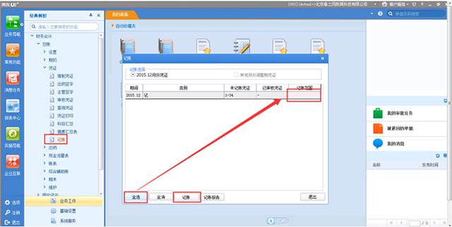 路径:财务会计——总账——凭证——记账——选中需要记账的凭证范围——点击记账即可