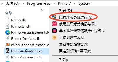 7、将RhinoActivator.exe复制到,软件安装位置,以管理员身份运行。