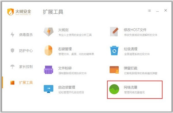 想要随时监控流量去向,了解程序流量情况,右键火绒安全软件托盘程序,开启流量悬浮窗即可随时监控流量信息。