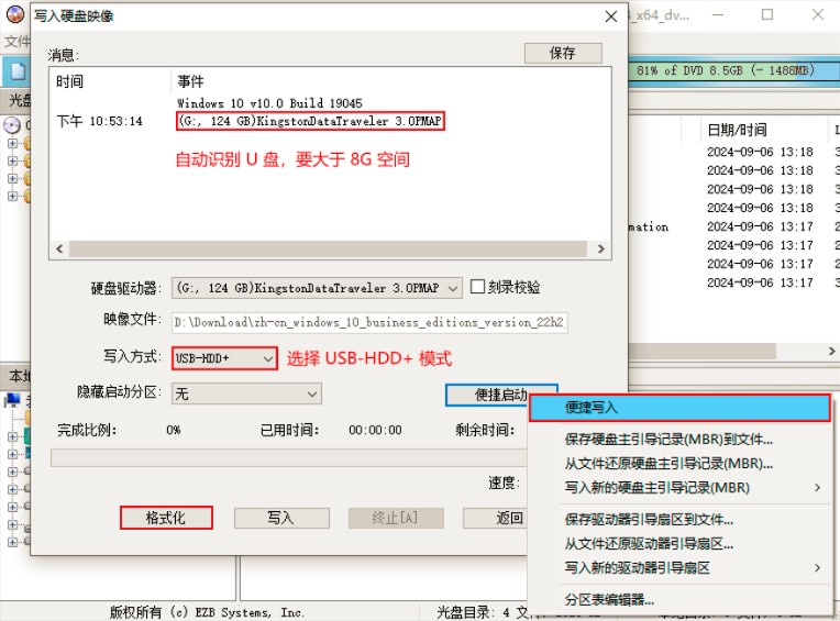 写入方式:选择 USB-HDD+ 模式。