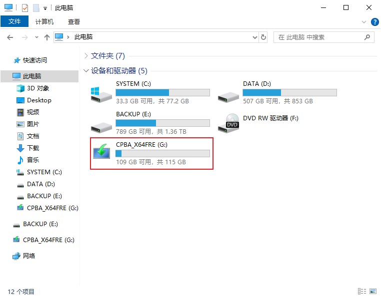 打开此电脑,显示系统启动盘,以及启动盘里Windows10安装程序,下一步就可以自己安装操作系统了。