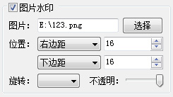 根据上图我们可以看到,添加图片水印时,我们可以设置图片水印的显示位置,旋转角度和不透明度等。