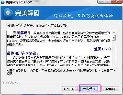 1、完美下载为完美解码播放器的官方,所以建议在本站下载完美解码最新版的安装程序。双击下载的安装程序开始安装。
