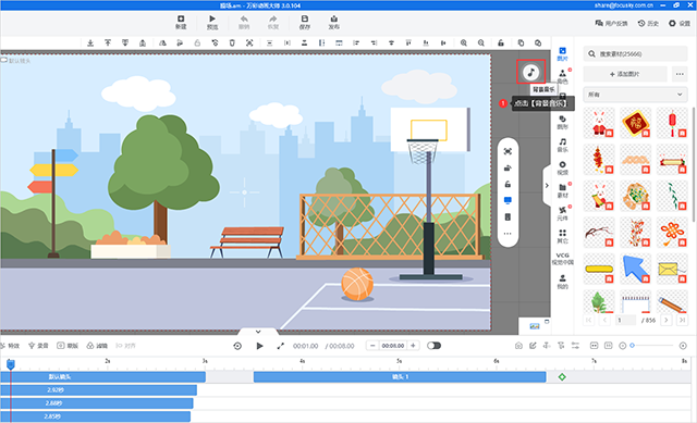 1、新建工程,点击画布右侧音乐图标【背景音乐】。