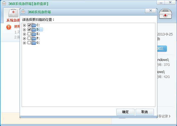 4、在急救盘系统中运行360系统急救箱急救盘版,开始杀毒