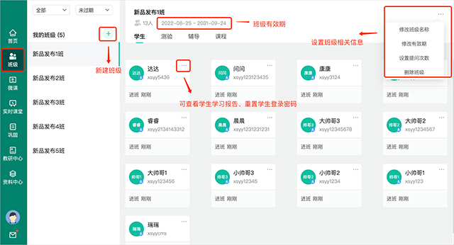 2、班级有效期:班级到期后,班级关系自动解散,无法进行线上互动;