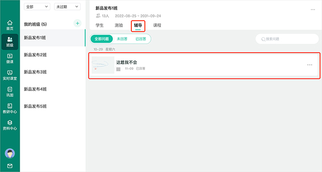 1)当班级同时设置了班主任和助教,班主任和助教可以看到班级中的所有测验。