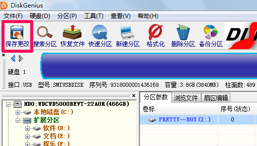 4、删除分区后,点击左上角的“保存更改”按钮。