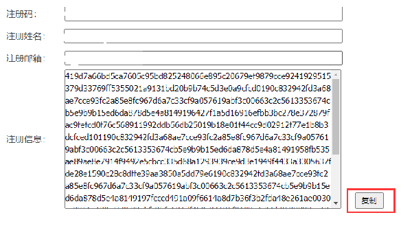 4、浏览器激活页面打开后,可以看到如下信息,点击“复制”按钮。