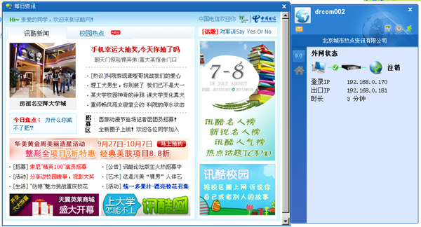 drcom比较适用于校园宽带用户,可以一键拨号上网,提供了校园网上认证服务,可以按照步骤进行设置,分配好学校IP地址,进行正常的网络通信,体验业余的学校生活,防单网卡代理,体验最佳的上网连接服务,客户端认证成功后将窗口最小化,轻松访问数字信息资源。