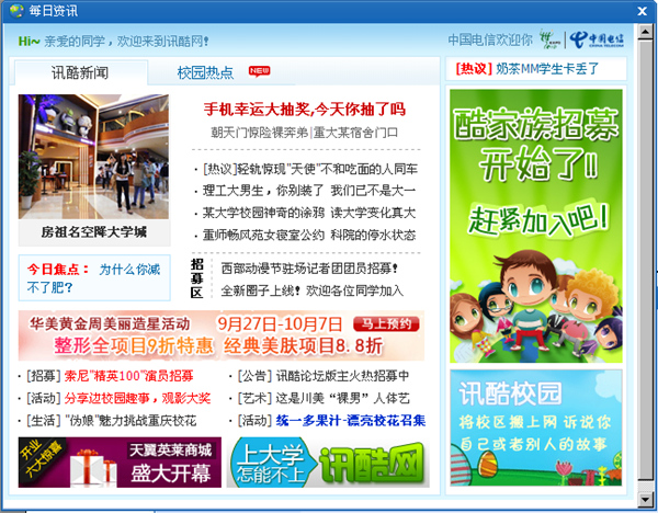 6、资讯框,显示校园新闻;